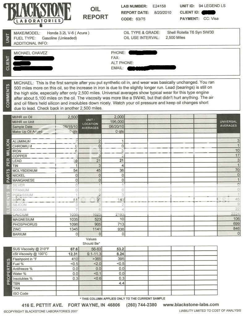 I'm curious if any of you guys have done any oil analysis? I have used Blackstone as cited in the article in the hope of pinning down a proper oil change interval. Using full synthetic, they still suggest my oil changes be performed every 2,500 miles or so because of increased lead content in my oil (they say from bearings). I have shown my reports to Dr. Dave, the resident oil expert, and he was not concerned with the lead numbers and we are currently trying a longer interval to see how the numbers change. Here is my latest report: