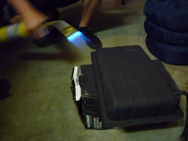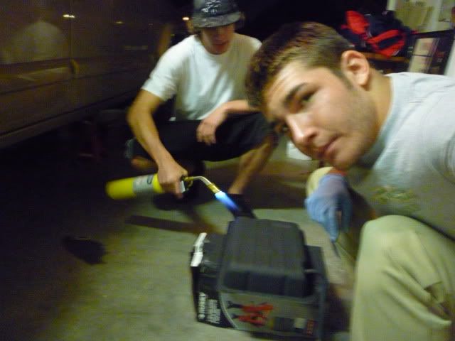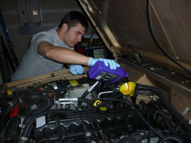 My buddy and I decided to put a little love into our cars yesterday. Here's what we did: Legend -Oil change to Royal Purple 5W30 -NSX oil filter -New drain plug -Fresh Honda coolant -A good wash to top it all off Cherokee -Oil change with Royal Purple 5W30 -K&N oil filter -Drop transmission pan -Fresh trans filter and pan gasket -Paint transmission pan flat black -Clean every part we came in contact with. Here are some pictures:    Any excuse to use the torch         My car was happy.