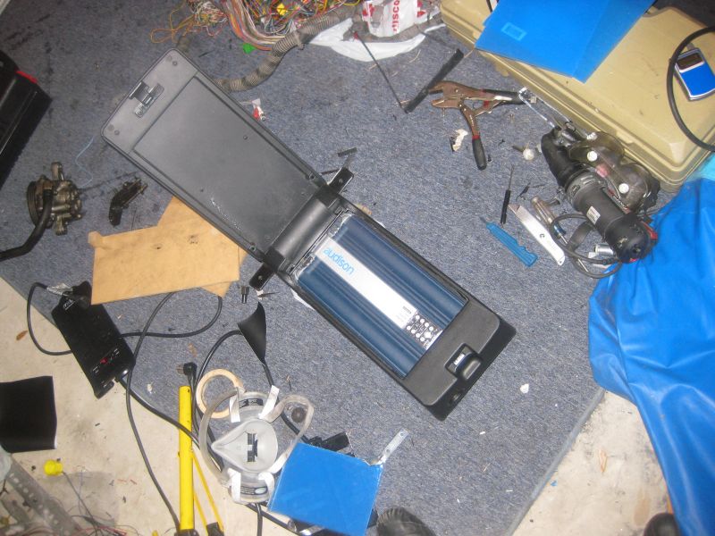 One of my first interior mods was to get some desperately needed floormats. I picked up some Hrants w/blue embroidery. ![]() All Legends need a good stereo system, right? I didn't want to be any different. I did not, however, want to have a trunk full of stuff that's easy to steal. I wanted something simple, and didn't feel the need to have a bunch of speakers. I spent several weeks looking for small parts to fit my needs. I ended up with: -1 Kicker 12SL7 -a set of Focal shallow mount 6.5s -Image Dynamic horns -a Pioneer EQ -2 Audison LRX series amps -a Pioneer headunit -a LOT of Raammat I gutted the car for the Raammat install: ![]() The next thing that needed tackling was the sub enclosure. Once again the requirements: small, light box; stealthy, different. A little plexiglas was in order, b/c I wanted a little show. I picked up a 60" long, 1" thick sheet on eBay. My friend Richard and I, first time builders, fabricated the box around the dimensions of the plexiglas and the sub. After a couple tries, we got the sides measured and cut, then the top, then the glass "fit" in place. If you see how the box is constructed, it's not conventional in the least, but it works. I wanted a stronger floor panel as well, so I found a guy that made the floor out of aluminum, the bottom of which is cross-braced. How strong? I can now sit/stand in my trunk w/out having to worry about the floor falling through. I also had him fab up a beauty board to "frame" the sub. I covered the front of the box w/a roll of vinyl I picked up: ![]() And here are the results. I took a piece of 3/4" MDF and cut it so that I could fabricate a 1 piece panel to hide the box. After covering it in automotive carpet, I achieved all my objectives in building out the trunk. ![]() ![]() ![]() The next step was where to mount all of it and keep everything looking stealth, minus the aftermarket headunit. Originally, I planned to mount the amps here: ![]() That changed the moment I picked up the Acura CL seats. I had a sneaking suspicious that with some modification, they woud fit inside the rear console, and I was correct. Here's the thread I originally posted about this little project, which I'll update as it progresses, but here are the pics pretty much completed with a piece of plexiglas covering things. ![]() ![]()