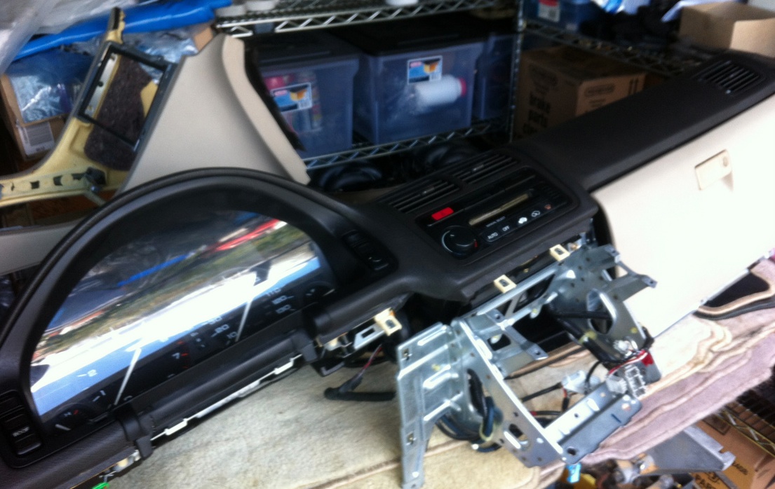 * Driver's window switch - This one isn't chipped and the AUTO feature works * Driver's inner handle - The old one was peeling and wobbled because the rear tab was missing. * Center console burlwood - The new one isn't chipped to pieces * Dash trim - the right color. Old one had started to turn yellow. * LF door speaker. * An attempt to rescue the old hood insulator failed. I'll be ordering a new one soon.On a bright note I found a flawless dash for it today. ![]() On the downside I blew out the left CV boot today. Fortunately I knew it was coming and I have an axle ready to put on the car. Along with a P/S rack waiting to be resealed and installed. Expectations are that I'll be dumping this car when the DMM Coupe is ready for my household teenage driver to start terrorizing the streets. ![]() rich
