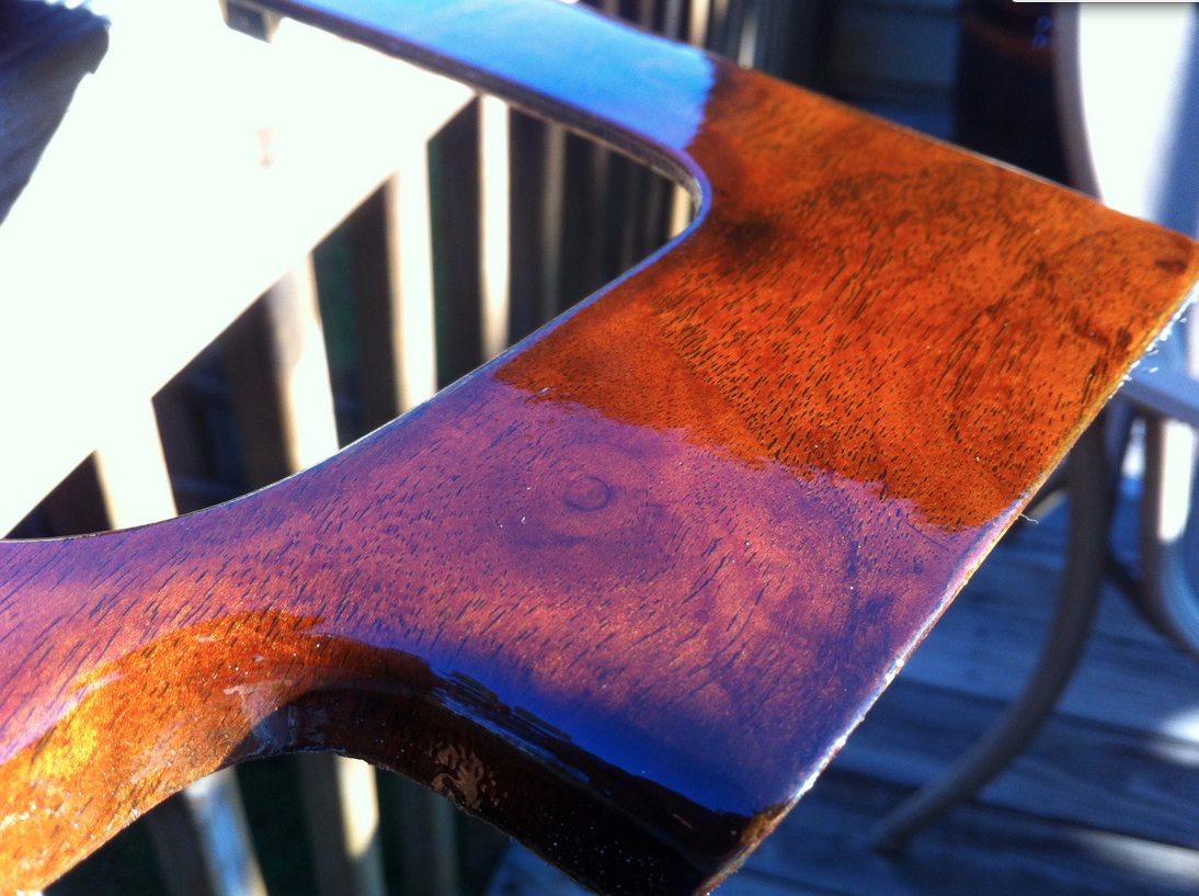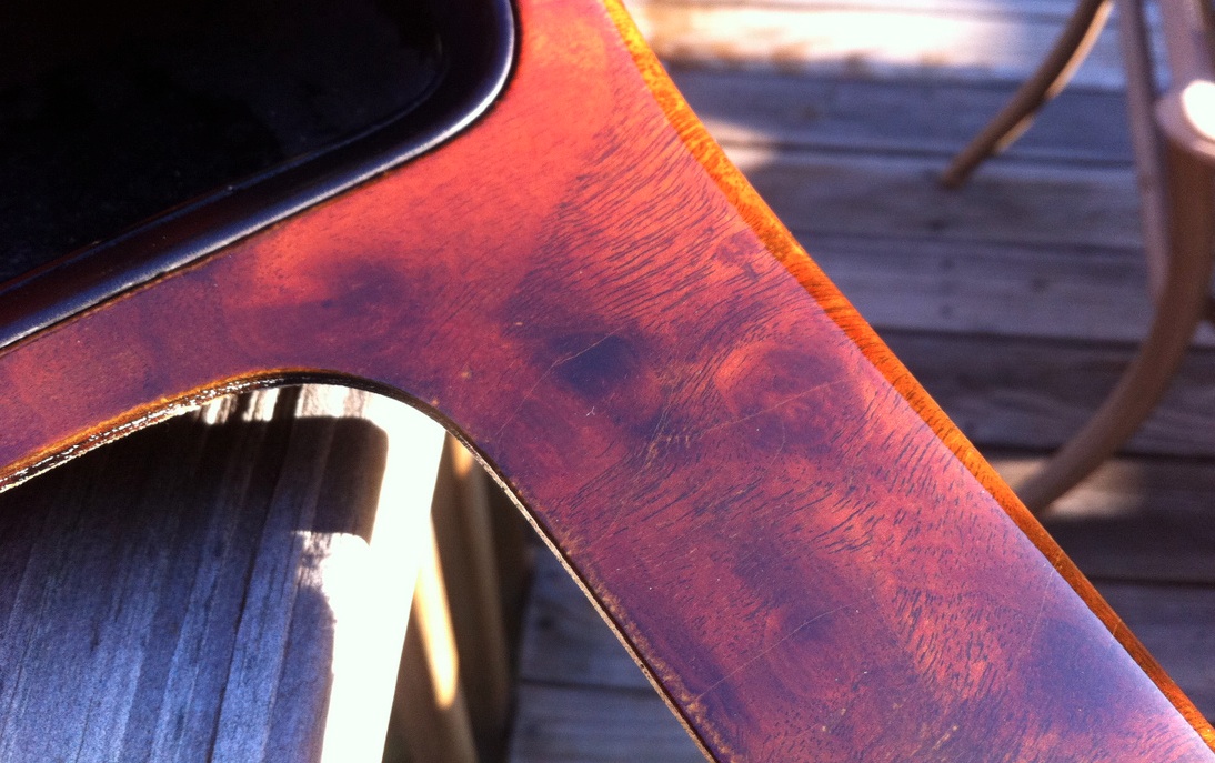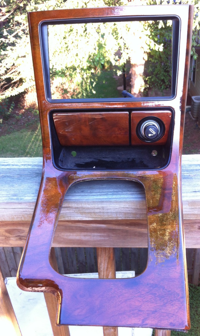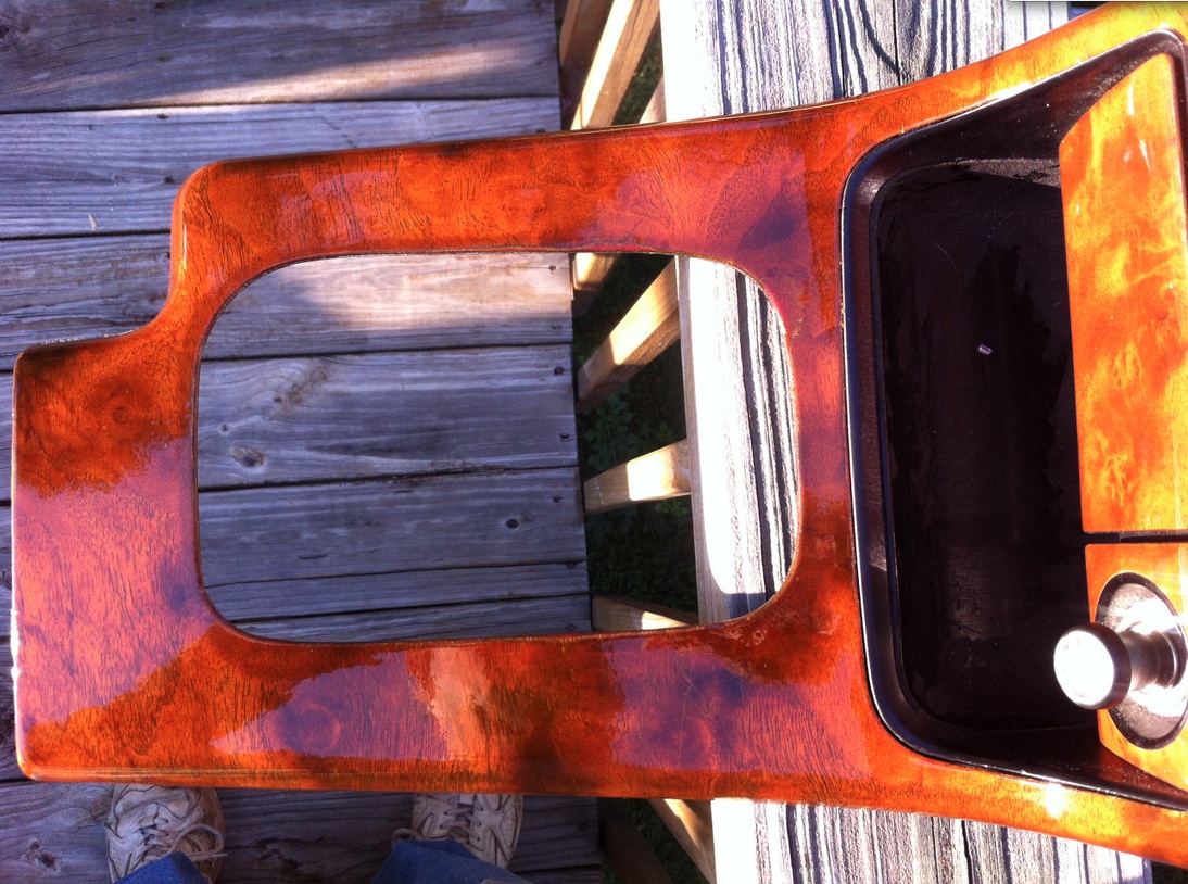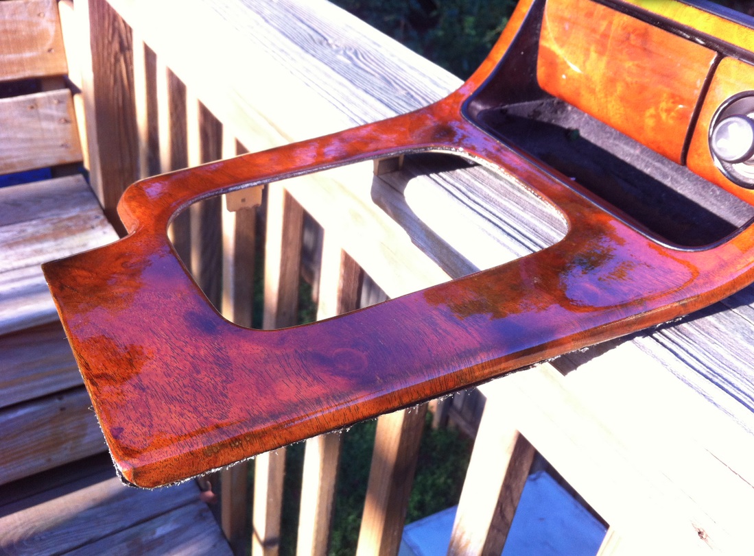 The reason my wood console has the grain definition it does is because instead of tinting the urethane I stained the actual wood. My next experiment will involve tinting the urethane and I will probably brush it on for better gloss control. I don't have a spray system so upon tinting the urethane brush will be my only option. Really the learning curve is removal... the application of a finish is pretty much academic for me and I don't have a huge preference except that I definitely want to use a durable spar urethane since the poly blends supposedly will cloud more over time. rich