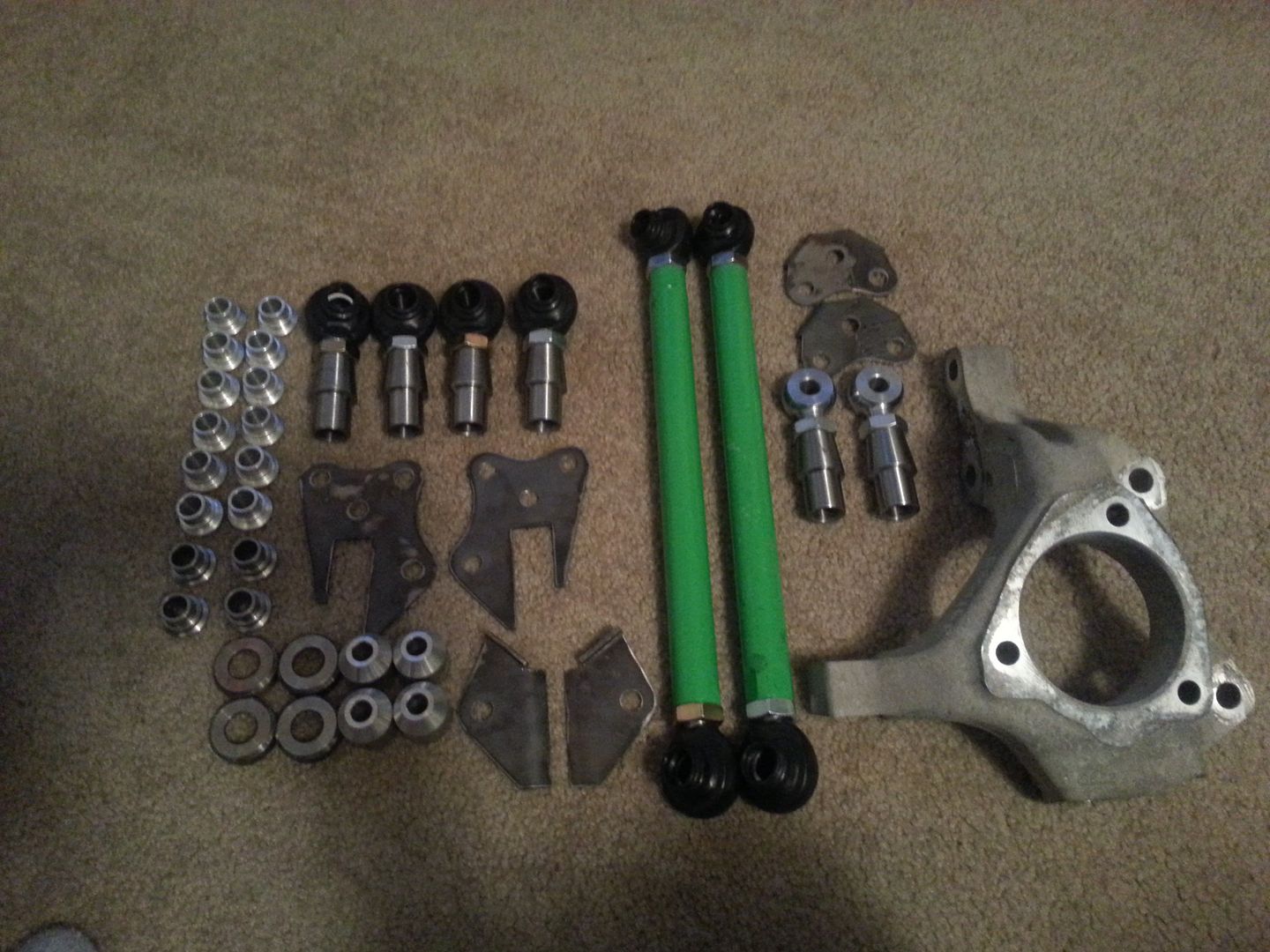 ![]() ![]() Once i had these chosen as my final hub, i then went about trying to figure out how the suspension geometry should be. Along with this i ended deciding to use a Buick ball joint. The reasoning behind this was because it uses a 3 bolt system which mad it easy to modify to fit any lower control arm designed. ![]() Not only that but they are dirt cheap, and would make for easy replacement and maintenance. 3 bolts and its out. Back to the suspension geometry. I wanted to make mine as simple as possible so i chose to go with a split a frame. There are so many kits out there and parts that you can buy to adapt to your build. Tie rod end crush washers and all the connector parts you need to make this work. Just plan everything out before. ![]() Here you can see the basic principle of the 3 bolt design and split a frame Whats nice is all the connector heads are fully adjustable. This will allow for tweaking once the car is staged and weighted. ![]() ![]() And a quick flash forward to the painted parts and color scheme ![]()
