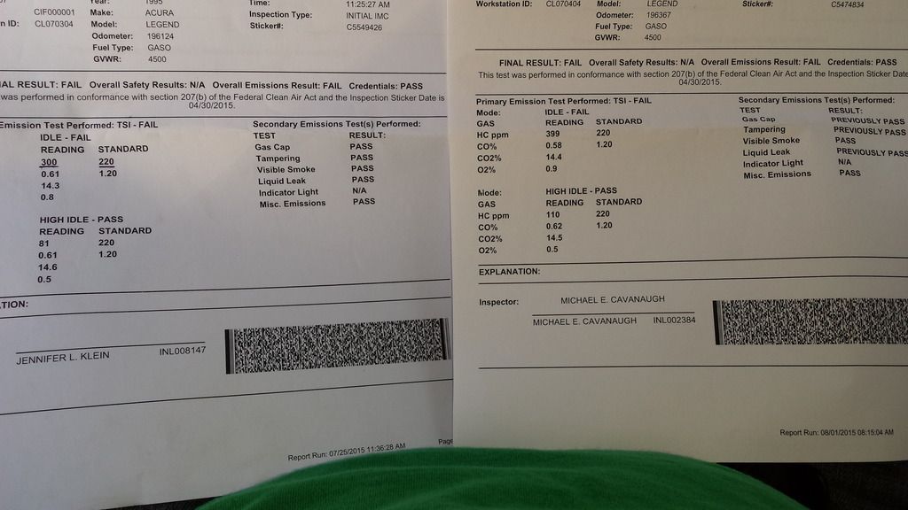 PM me some pics and price if you want.... Big shoutout to rwheadon for his help with my electrical and emissions problem! Such as pointing out to me there is a switch in my glove box... and now my trunk release works. So I grabbed a master switch from a semi-local junkyard and switched it out. This one had a functioning safety lock, the one at the bottom. Here is a picture before I cleaned it up before I installed it. ![]() Now three of my windows work. Drivers does not, I learned today the previous owner removed the window motor, and just stuck a block of wood to hold the window up.... lol Power mirror only works up and down, not side to side. I do not think heat mirror works either. However the memory seat switch I got seems to have a different connector than on mine... it was off a 93 or 92. Pics of my emissions test. ![]() On the left is first one, you can see better results. On the right is after a half tank of Techron added in, and a then a full tank of ultra Shell gas burned, followed by a bottle of Cata-Clean added in on a 1/4th tank, and then half filled with Sunnoco premium gas. It came out worse... Had the Cat replaced at the school yesterday: ![]() ![]() THERE'S your problem! The instructor said the old cat was a completely hallow shell. So for all intents and purposes, I was minus a Cat. Here is the new California compliant Walker Cat: ![]() ![]() So drum roll please.... ![]() ![]() PASS! ANd I got the pre and post Cat gaskets, and the driver's side Exhuast-to-Manifold. Passed emissions without them, but still going to put them on today. ![]() So why did I fail emissions? It couldn't be the Cat causing his HC readings. Well rwheadon pointed to his signature... and it hit me. I was seeing a puff of smoke when I first start the car in the morning. I am low on Oil. And high HC readings. The valve stem seals were not changed when the Head Gasket job was done.... ![]() So now I have that project to add to the list. Thankfully it can wait a while till things settle down. |