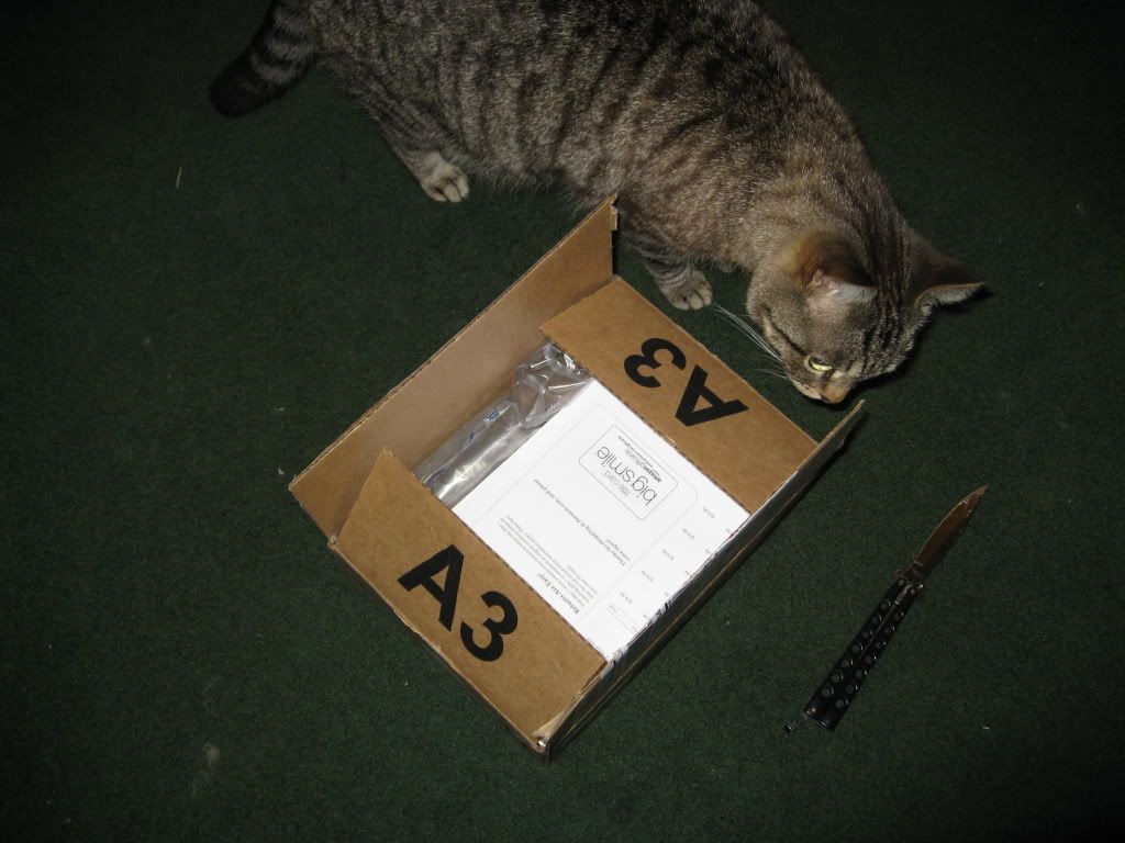 Noice, but, I'd be more careful where you place the knife.  Your cat has that look it wants to stab someone   .